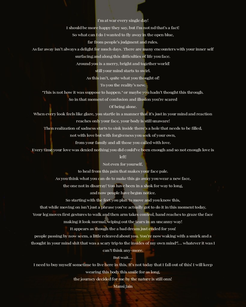 As far away isn’t always a delight for much days. There are many encounters with your inner self surfacing and along this difficulties of life you face.